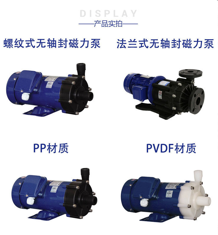 MD耐腐蝕磁力泵   功能特點:   MD系列磁力泵結(jié)構(gòu)小巧,防漏, 在各個行業(yè)廣泛應(yīng)用,以其耐腐蝕性和耐用性而擁有廣大用戶的贊譽。主要材質(zhì)使用FRPP、PVDF ETFE ,可以用來輸送多種腐蝕